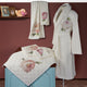 Tessuto alto cm 280 Disponibile in Mano Effetto Lino oppure Effetto Lucido da Cerimonia in Unito e Lavorazione Jacquard disegno Fiocco e disegno Floreale Jacquard