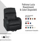- Lift: posizionamento in altezza della seduta della poltrona, grazie al pistone Okin supporta un'alzata massima di Kg. 170 Relax: posizionamento schienale e poggia gambe, grazie ai 2 motori separati della poltrona permette di regolare in modo del tutto indipendente l'inclinazione dello schienale e del poggia gambe, per una maggiore comodità. - Fornita a 2 motori - Comando a cavo
